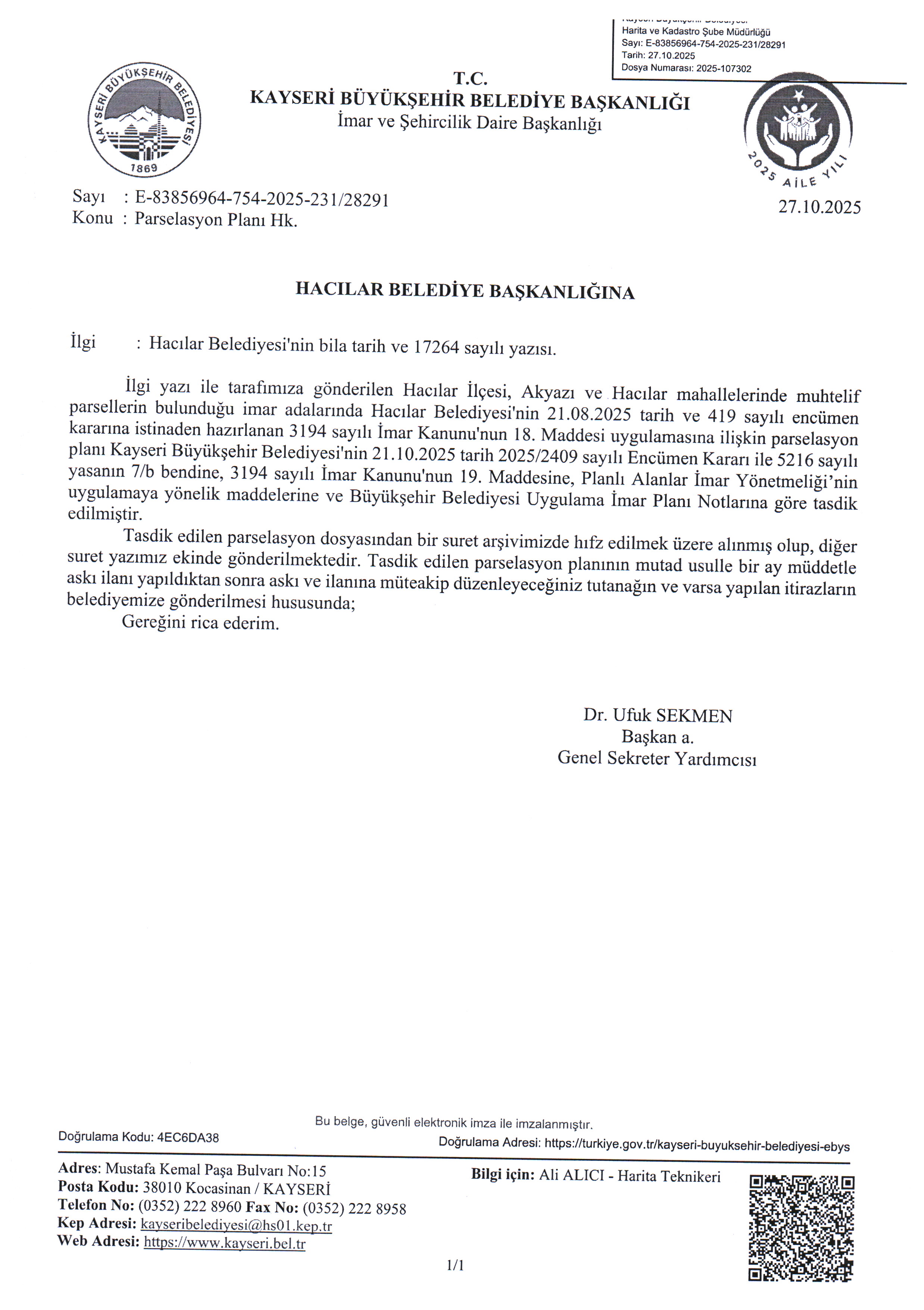 Akyazı Mahallesi, Kayseri Caddesinde muhtelif parsellerde 3194 sayılı İmar Kanunu' nun 18.madde uygulaması