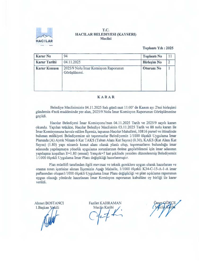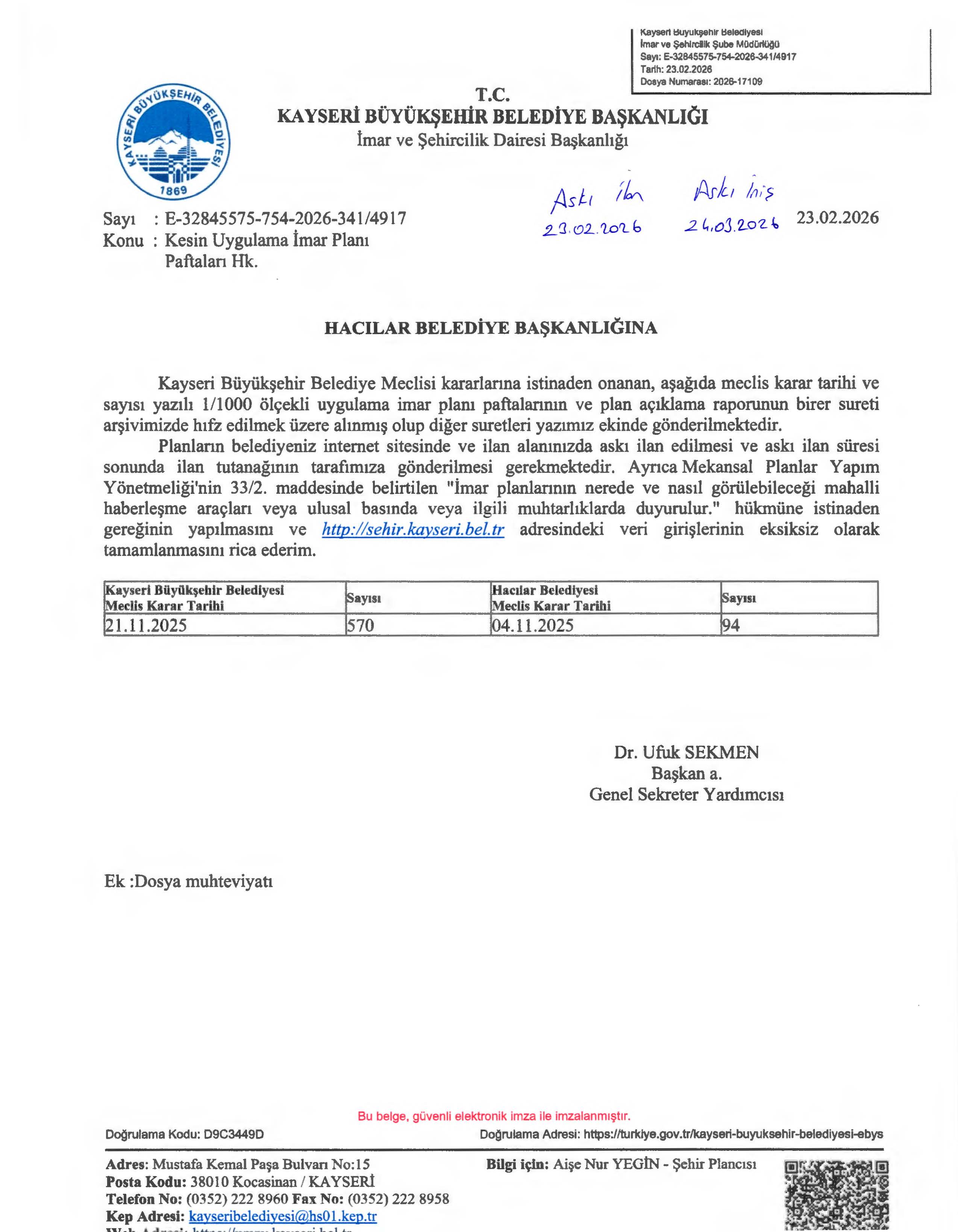 İlçemiz Aşağı Mahalle'de 1/1000 ölçekli uygulama imar planı değişikliği duyurusu