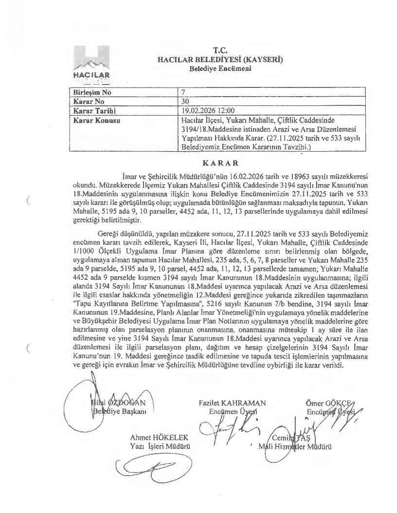 İlçemiz Yukarı Mahalle Çiftlik Caddesi'nde 3194 sayılı İmar Kanununun 18. Madde uygulaması Hakkında Duyuru