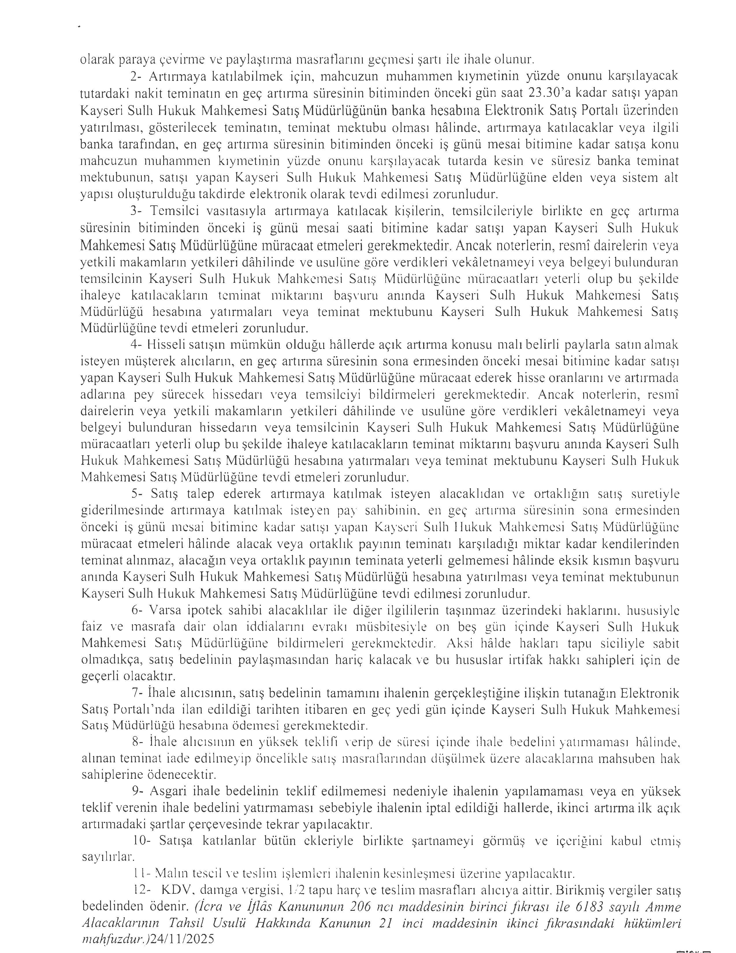 TAŞINMAZIN ELEKTRONİK SATIŞ ORTAMINDA AÇIK ARTIRMA İLANI 24.04.2026