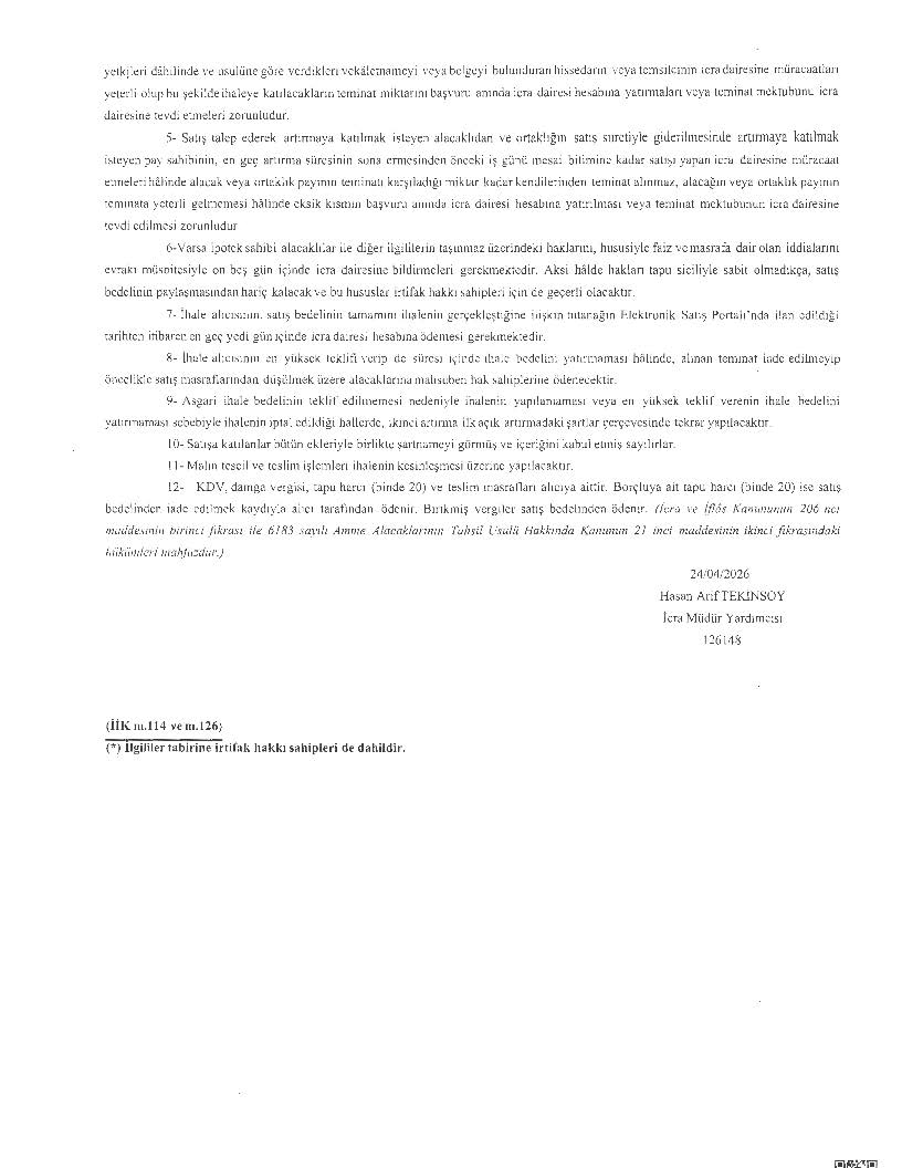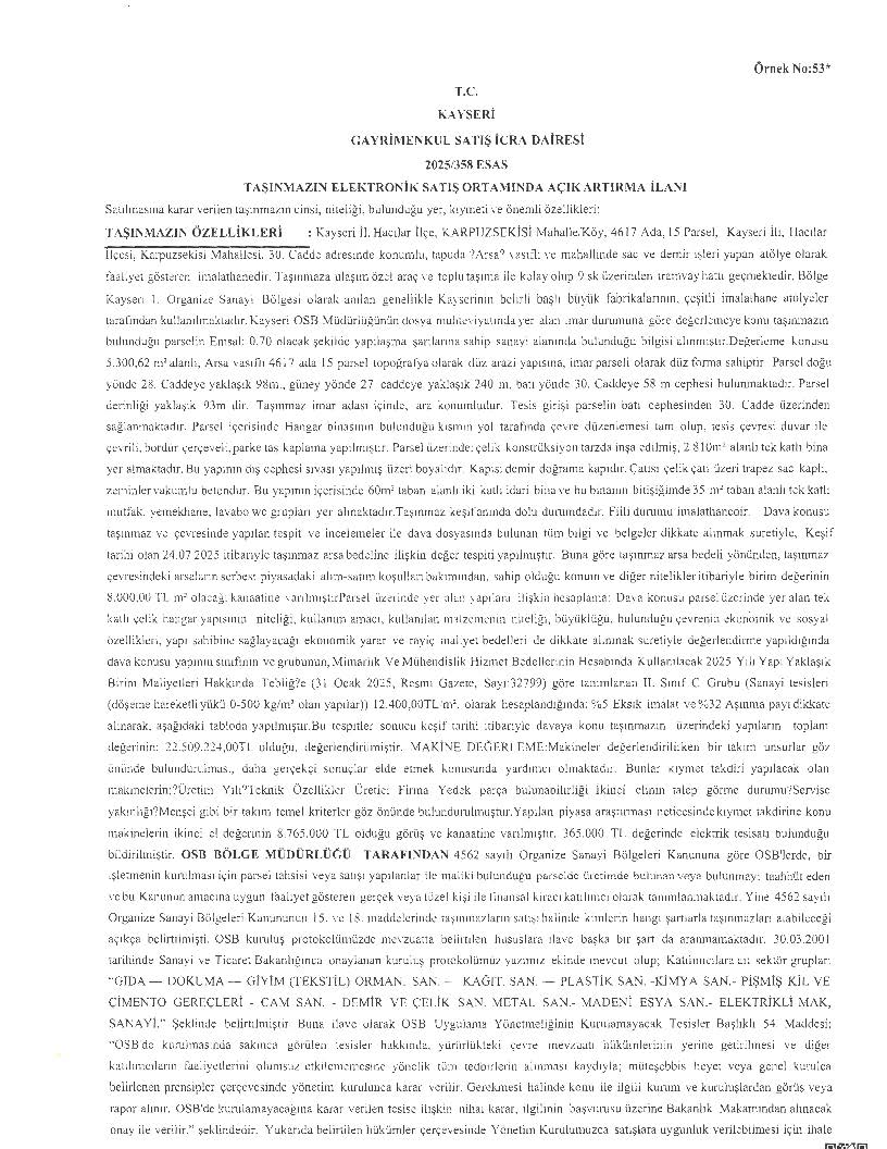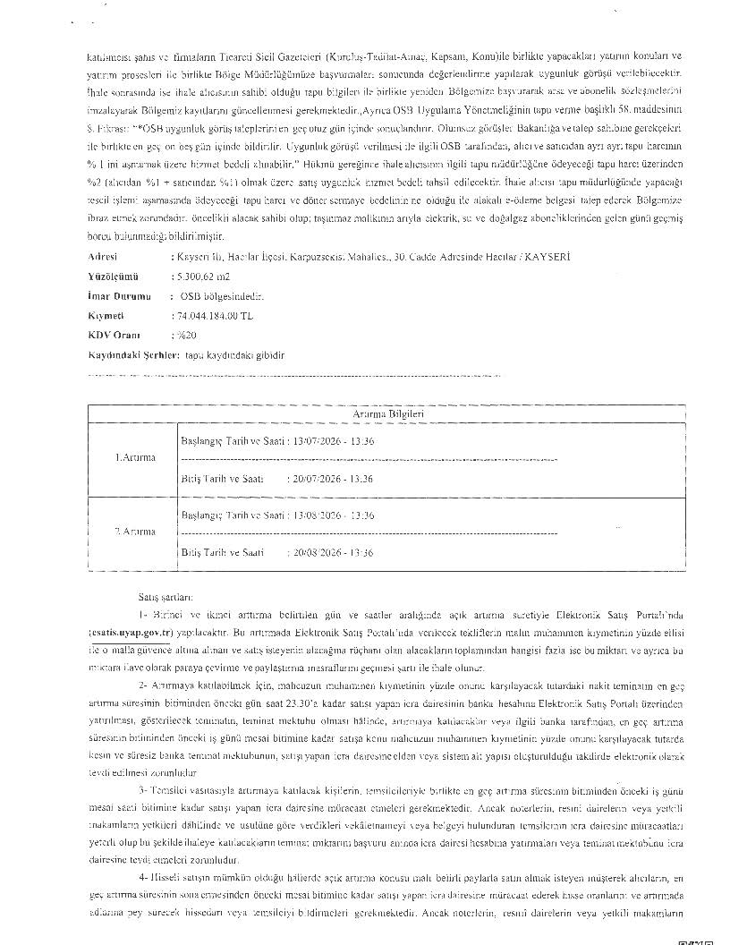 TAŞINMAZIN ELEKTRONİK SATIŞ ORTAMINDA AÇIK ARTIRMA İLANI