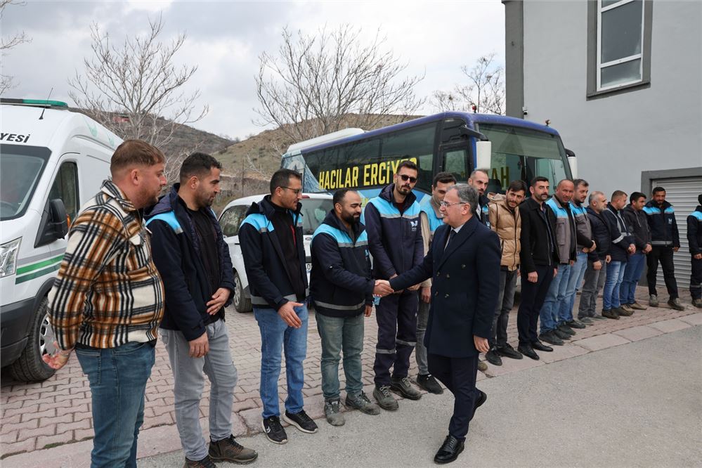 İlk olarak Hacılar Belediyesi Park-Bahçeler ve Temizlik İşleri Müdürlüğü personeliyle bir araya gelen Başkan Özdoğan, çalışanların özverili çalışmalarına dikkat çekerek şu ifadeleri kullandı:
