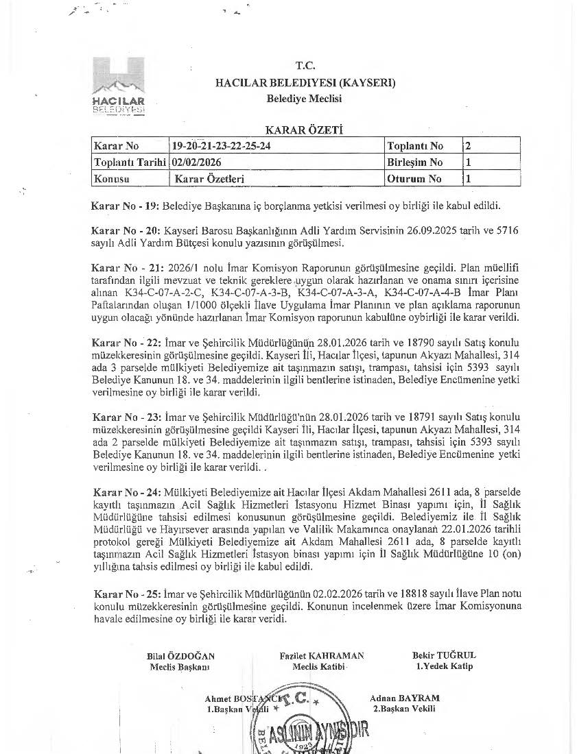 HACILAR BELEDİYE MECLİSİ ŞUBAT AYI KARAR ÖZETİ