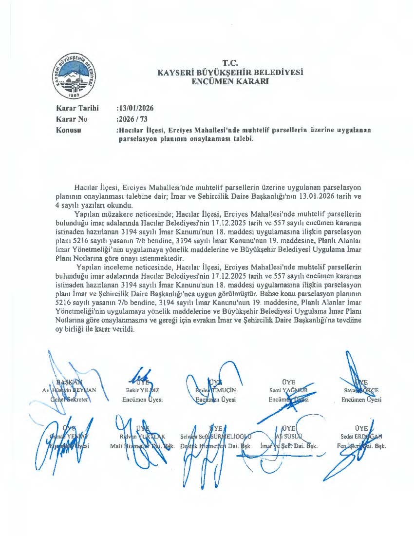 İLÇEMİZ ERCİYES MAH. 3194/18. MADDE UYGULAMASI YAPILMASI HAKKINDA DUYURU