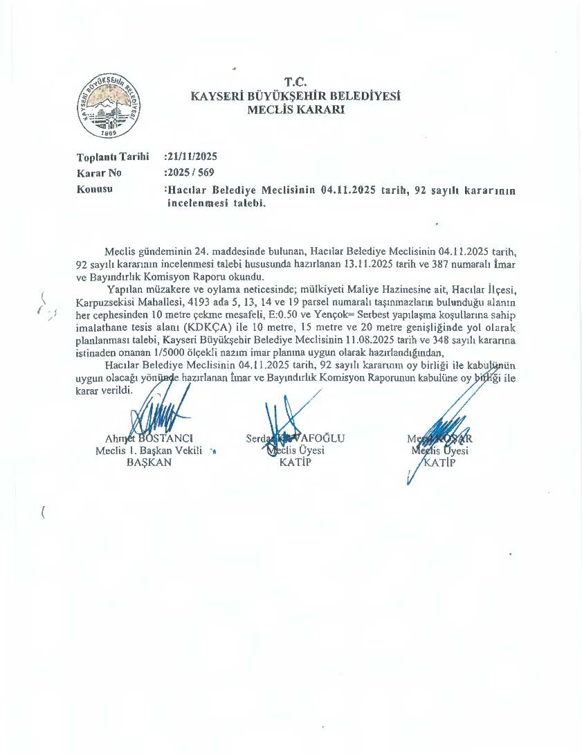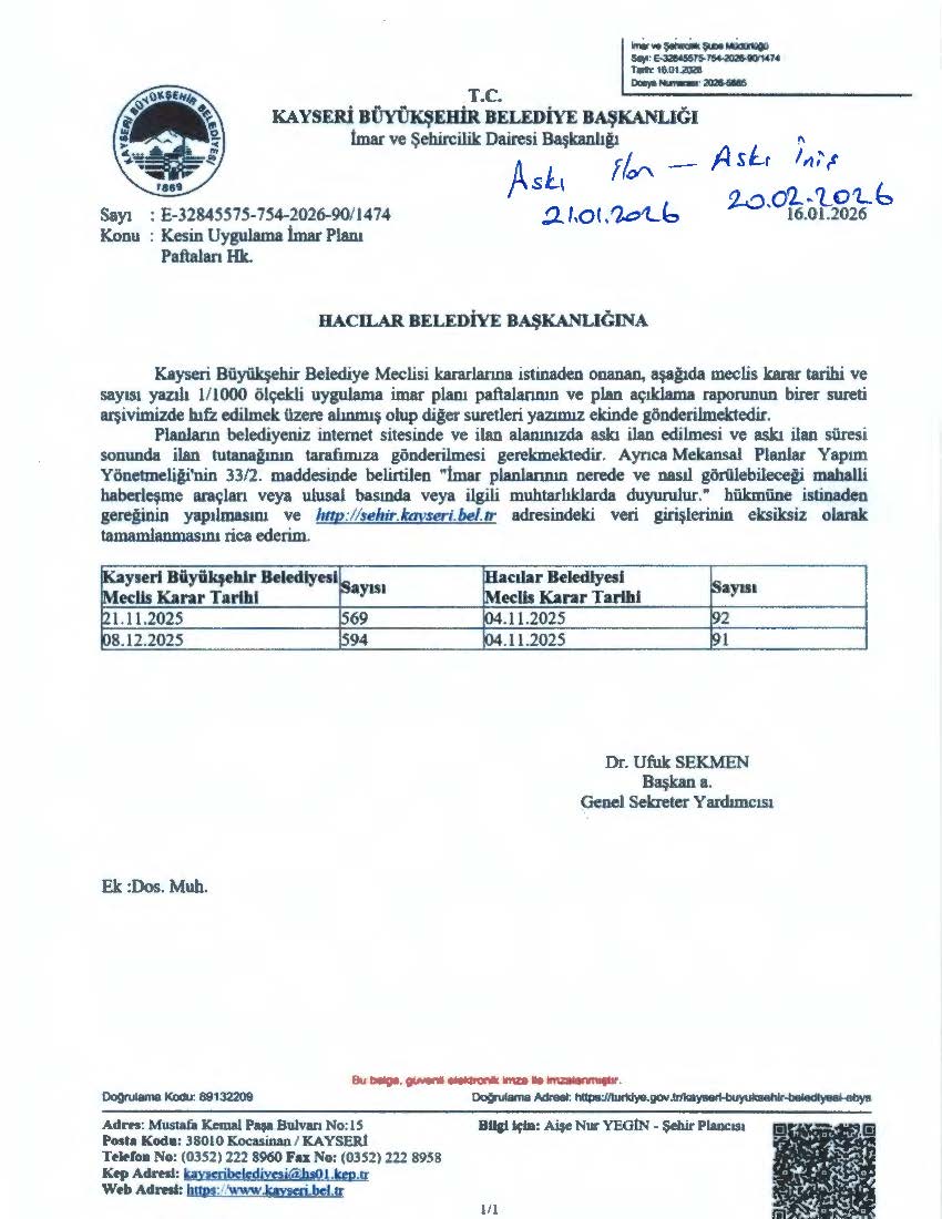 İlçemiz Karpuzsekisi Mahallesi'nde 1/1000 ölçekli ilave imar planı yapılması hakkında duyuru