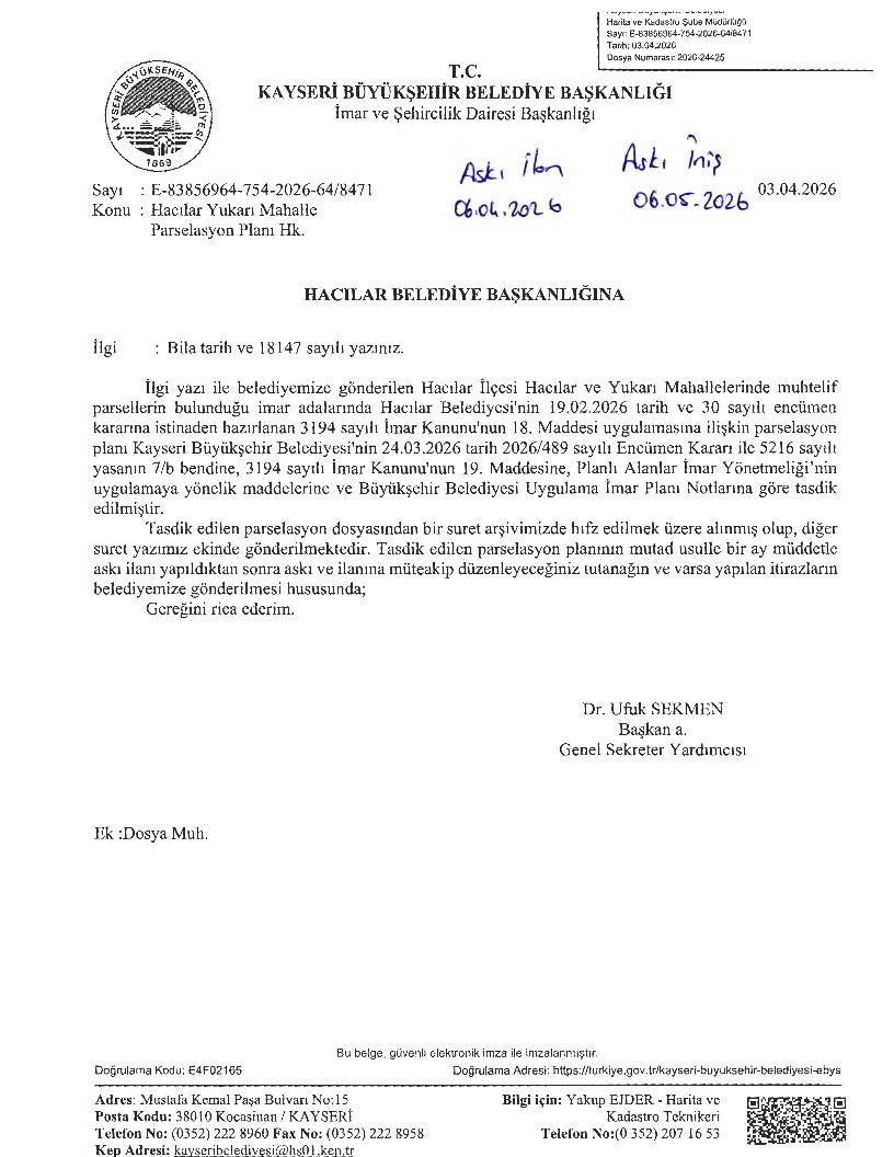 İlçemiz Yukarı Mahalle Çiftlik Caddesi'nde 3194 sayılı İmar Kanununun 18. Madde uygulaması Hakkında Duyuru