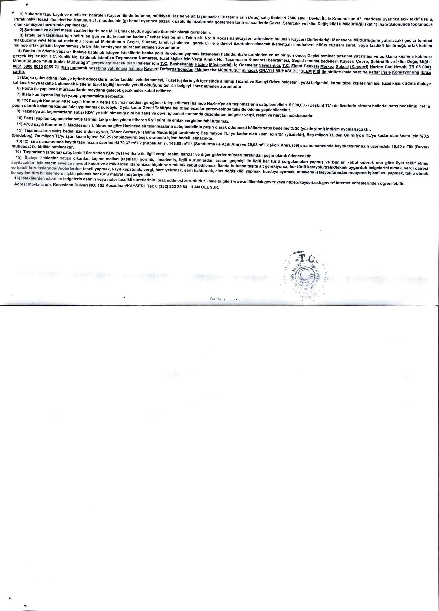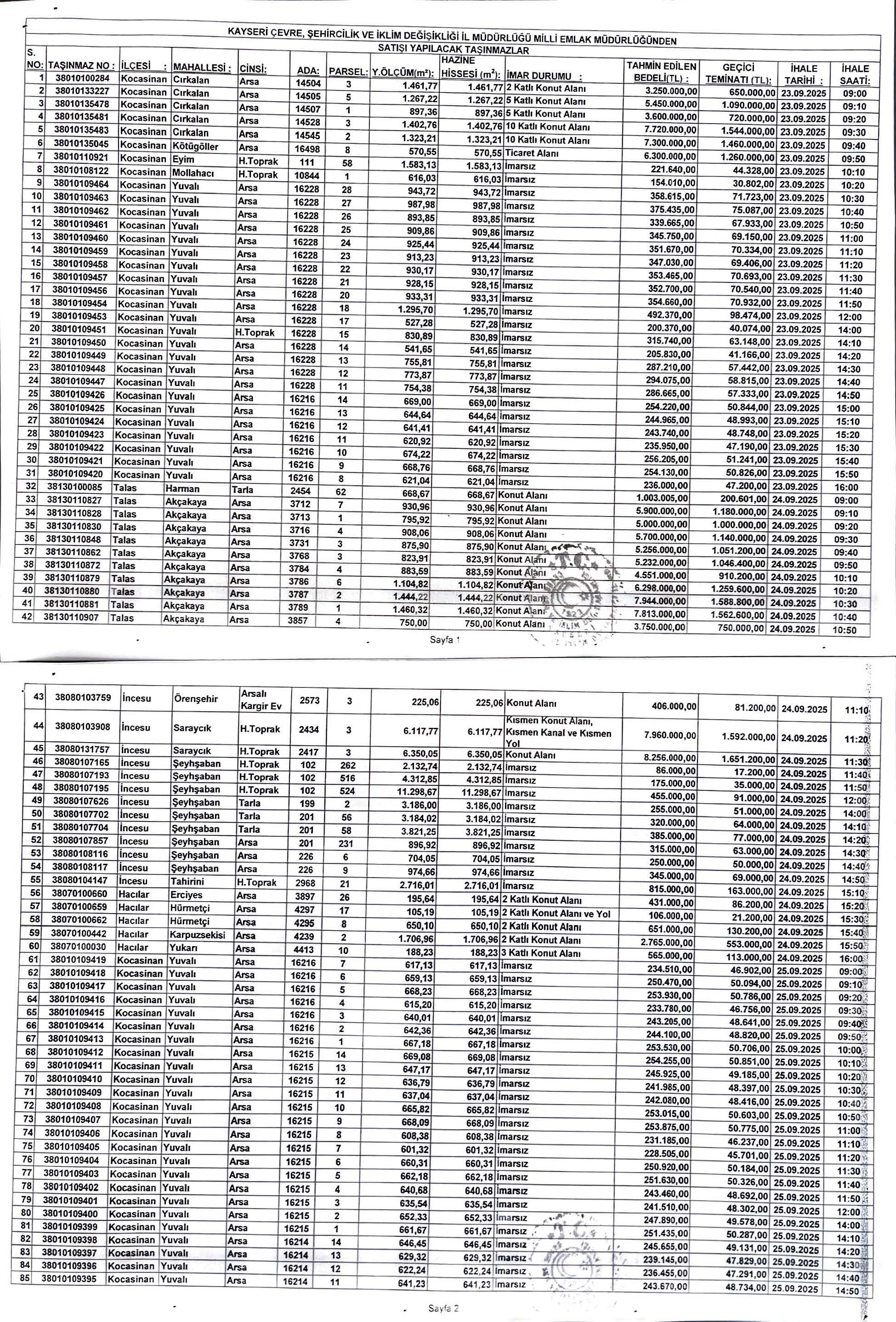 KAYSERİ ÇEVRE ŞEHİRCİLİK VE İKLİM DEĞİŞİKLİĞİ İL MÜDÜRLÜĞÜ'NDEN SATIŞI YAPILACAK TAŞINMAZLAR (29.09.2025)