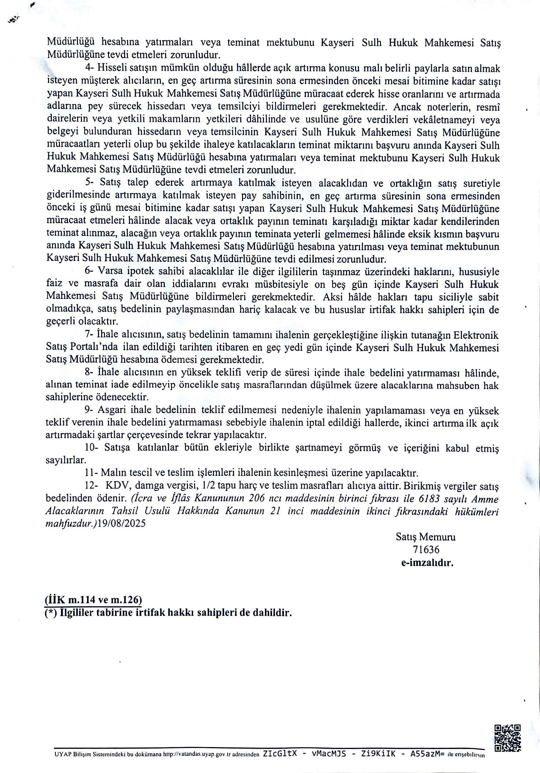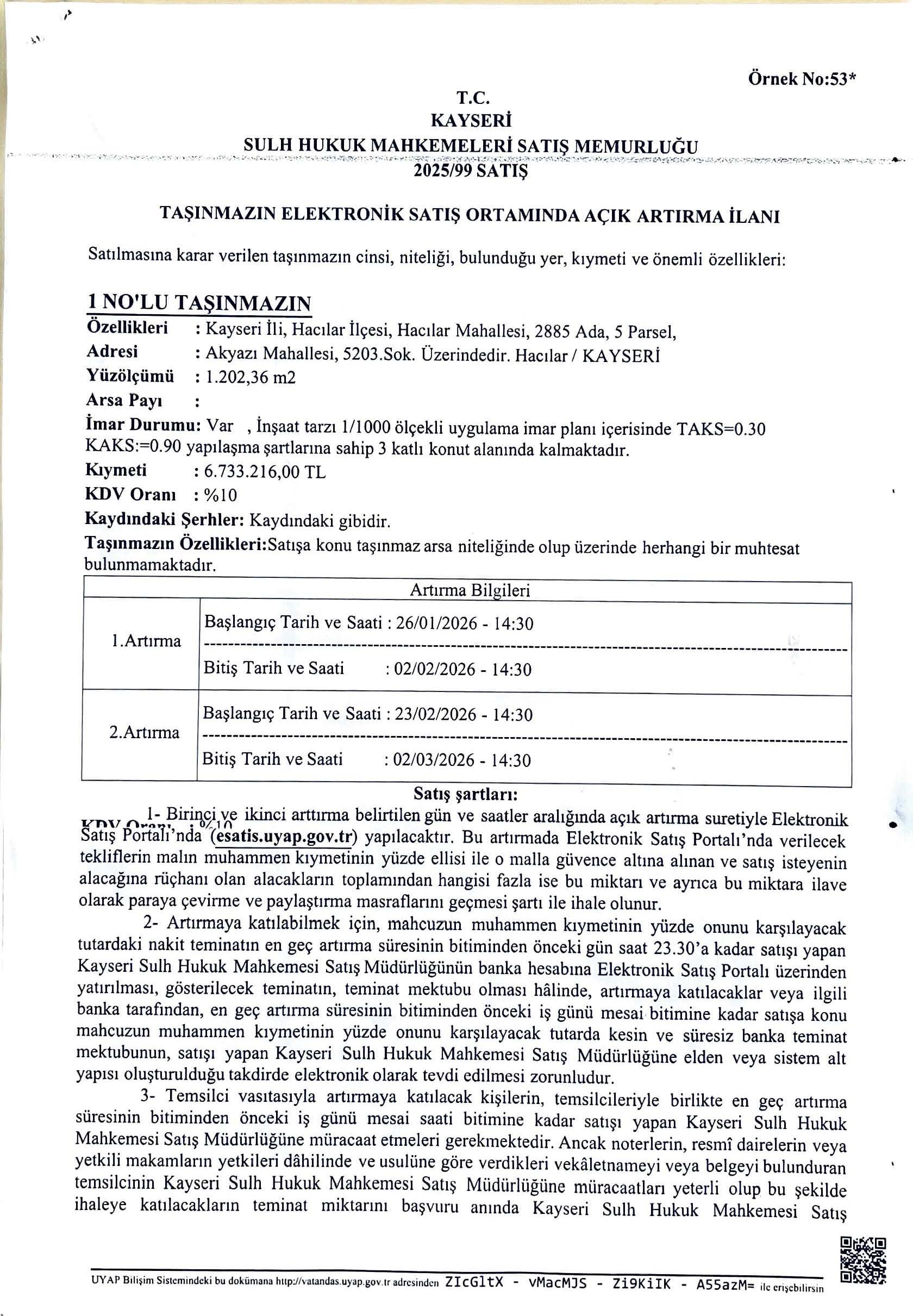 TAŞINMAZIN ELEKTRONİK SATIŞ ORTAMINDA AÇIK ARTIRMA İLANI (02.02.2026)