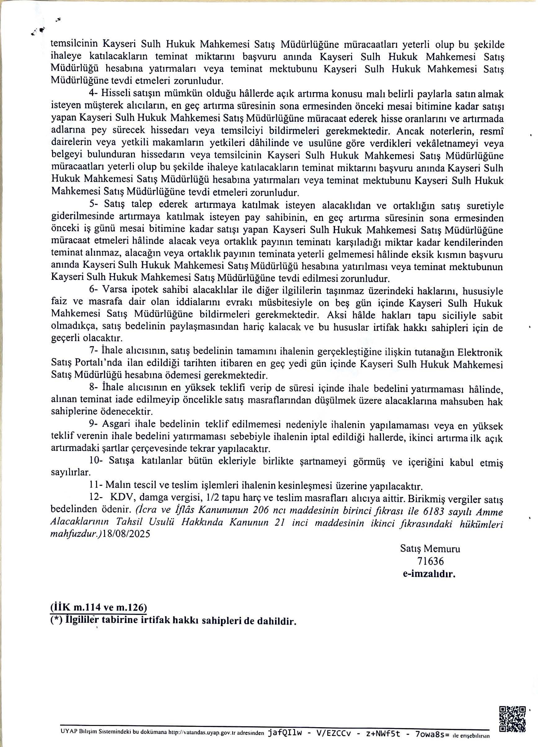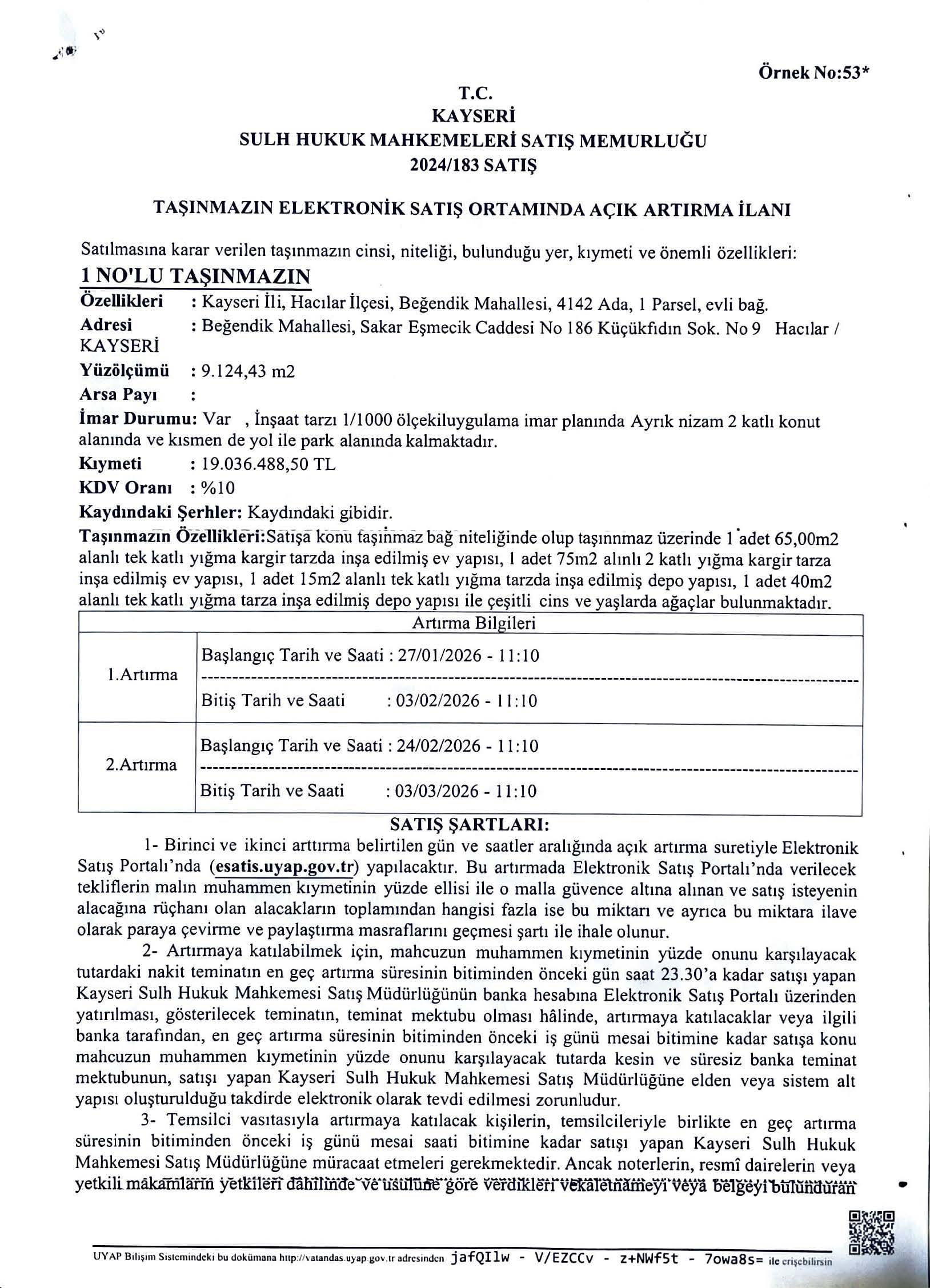 TAŞINMAZIN ELEKTRONİK SATIŞ ORTAMINDA AÇIK ARTIRMA İLANI (03.02.2026)