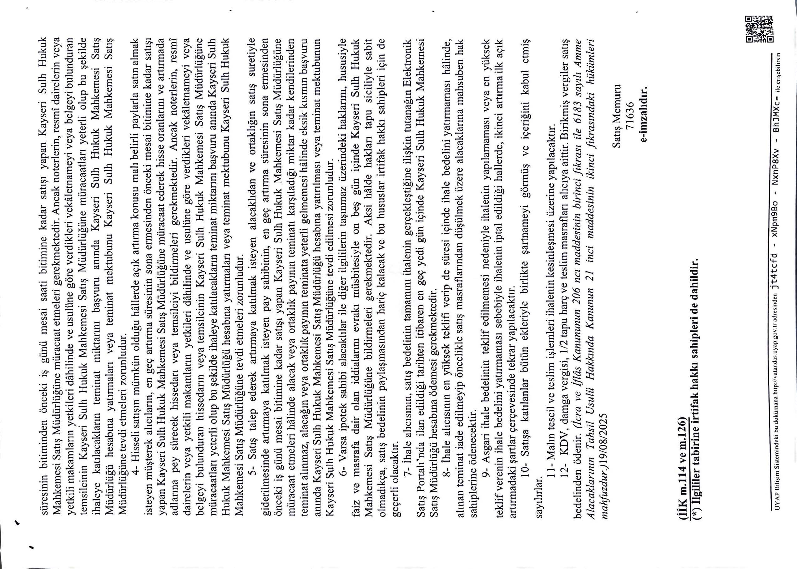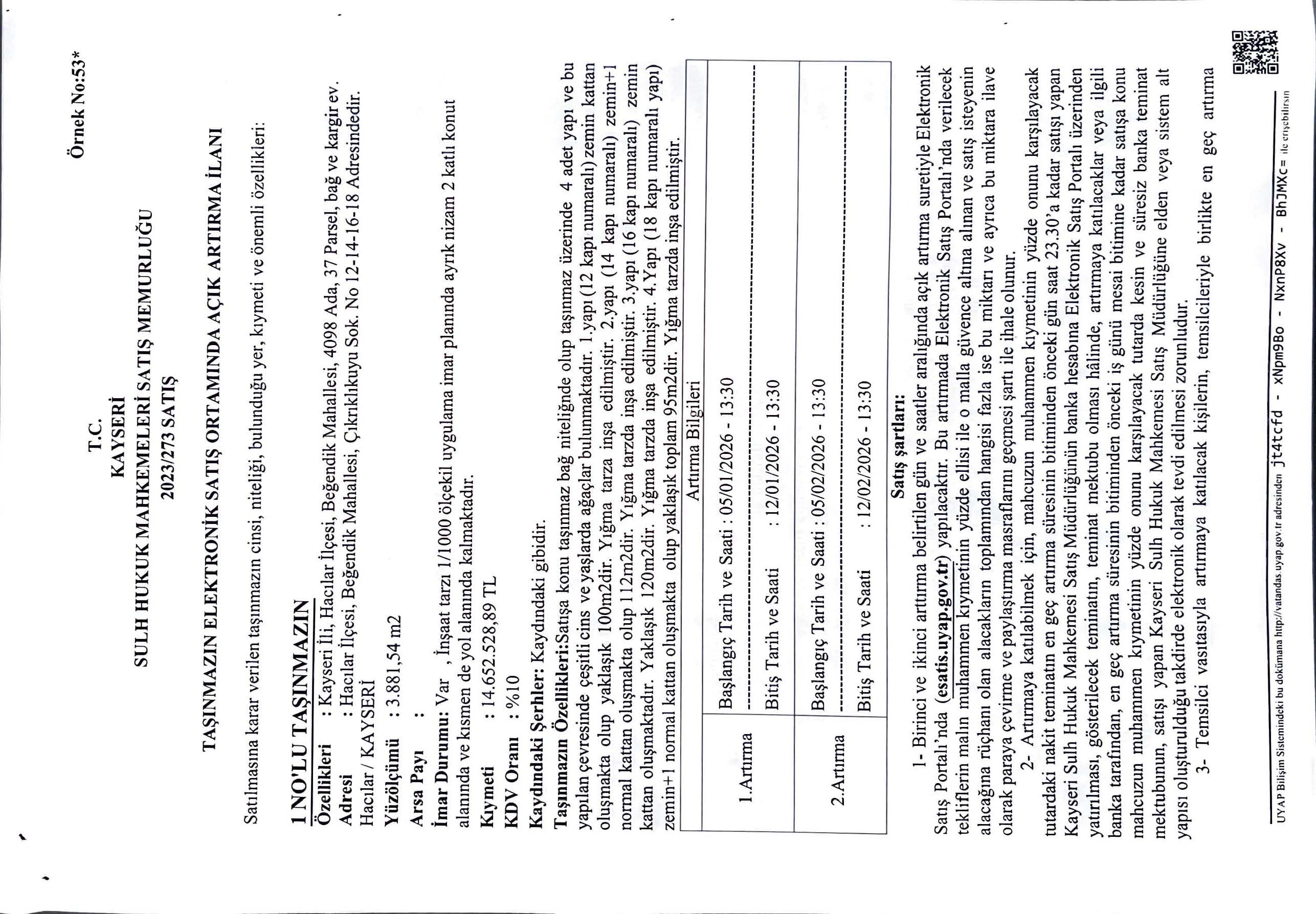 TAŞINMAZIN ELEKTRONİK SATIŞ ORTAMINDA AÇIK ARTIRMA İLANI (12.02.2026)