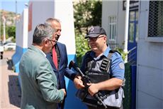 Ardından Başkan Özdoğan, Hacılar Emniyet Müdürlüğü'nü ziyaret ederek İlçe Emniyet Müdürü Maksut Güldaş ve emniyet mensuplarıyla bir araya geldi. Güvenlik güçlerinin bayramını kutlayan Başkan Özdoğan, emniyet mensuplarına teşekkürlerini ileterek, ilçenin huzur ve güvenliği için gösterdikleri özveriden dolayı teşekkürlerini iletti.