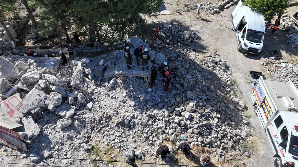 senaryosu gereği yaşanan yıkımın ardından arama-kurtarma çalışmalarını yerinde